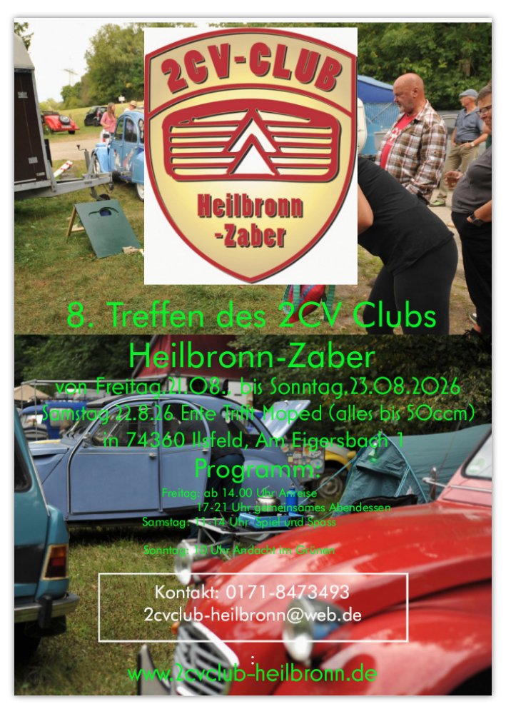 2cvClub-Heilbronn@web.de anmelden und danach eine Bestätigung von uns erhalten haben.